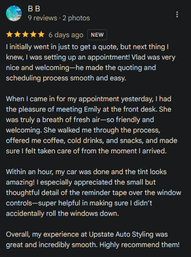 500+ Spartanburg drivers trust us to protect and style their vehicles